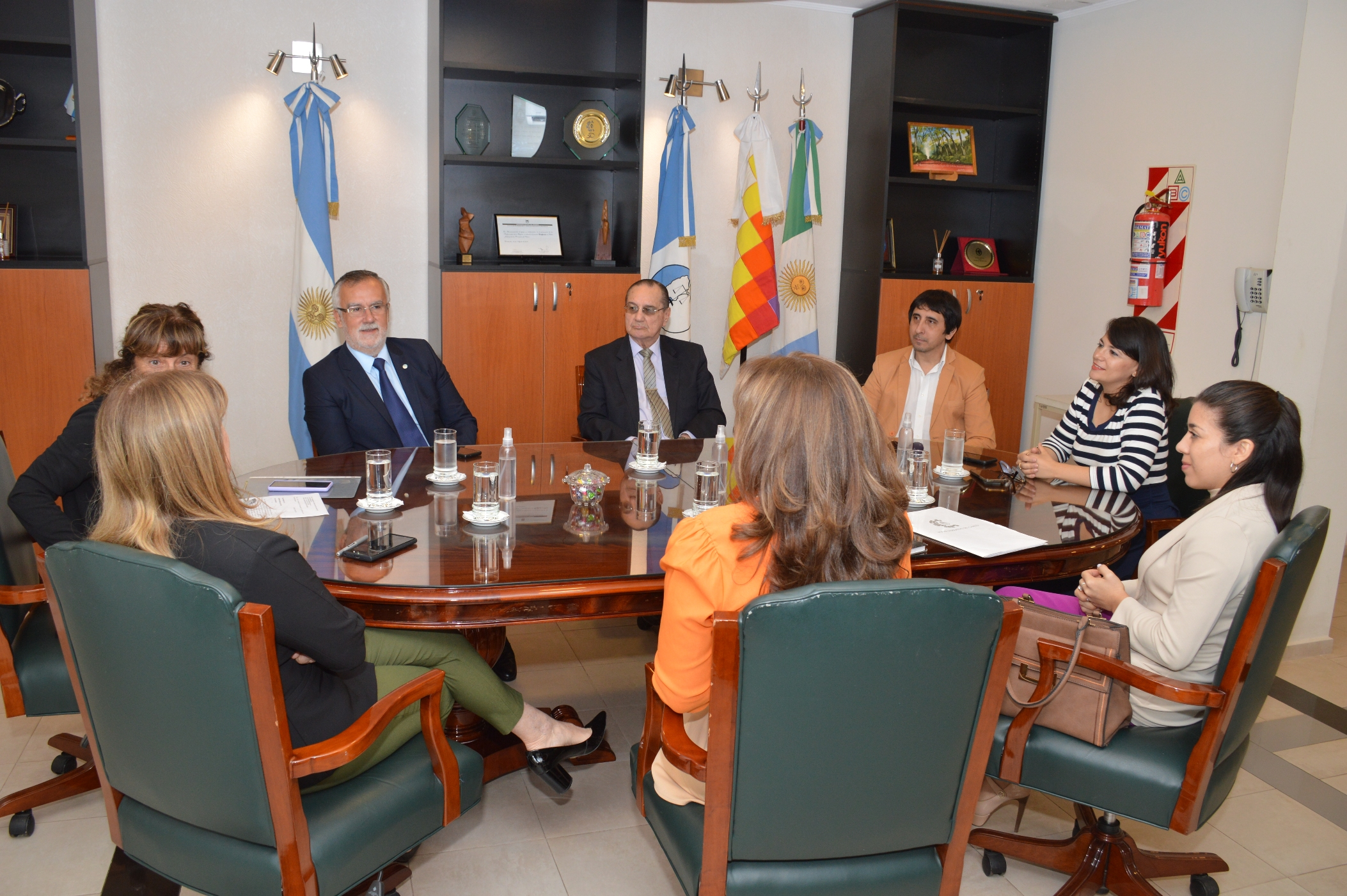 La reunión en el salón de acuerdos fue encabezada la presidenta del STJ, Iride Isabel María Grillo, junto a sus pares Víctor del Río, Emilia Maria y Alberto Mario Modi. Además participaron la presidenta de la Entidad, María Elena Pace, las juezas Eliana López Piccilli (Corzuela) y Magdalena García (La Eduvigis), y el juez José Haertel (Campo Largo).
